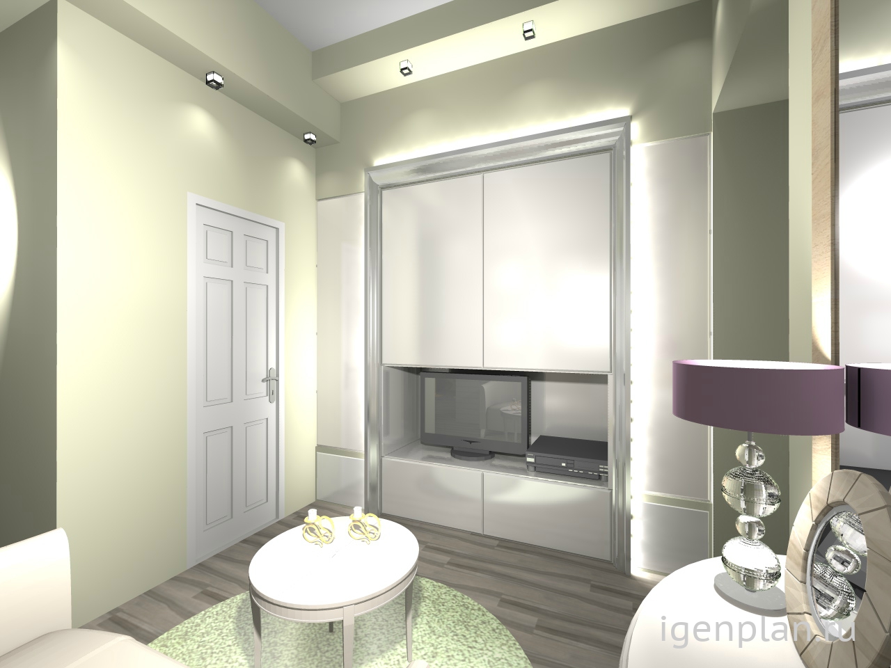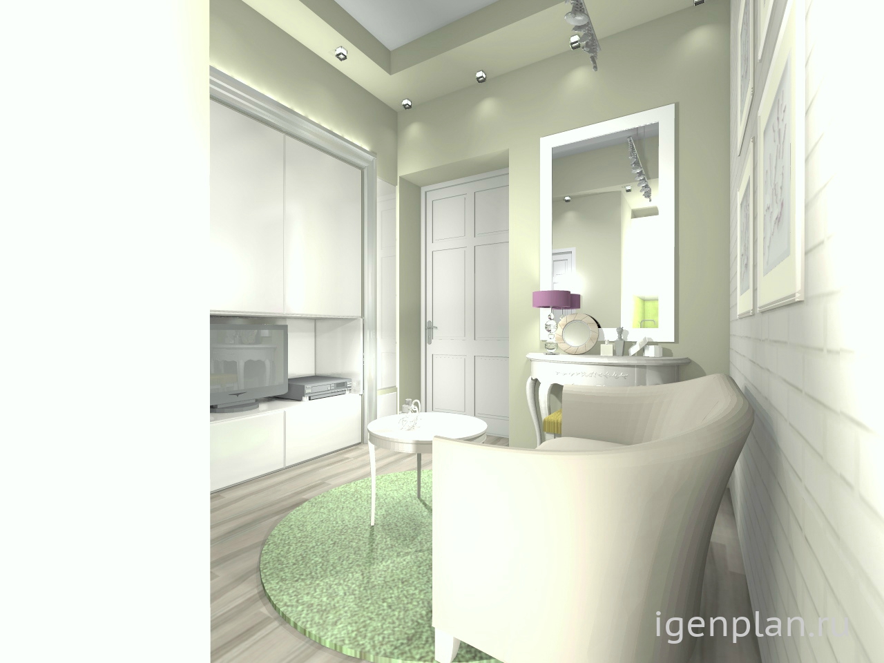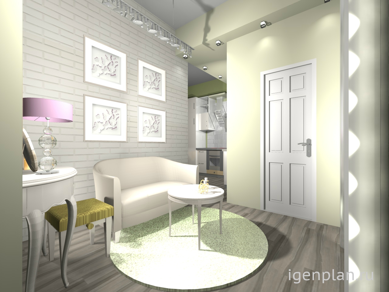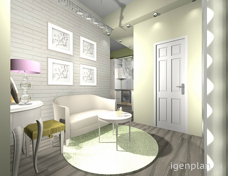 Гостиная прихожая в однокомнатной квартире, для молодой девушки.