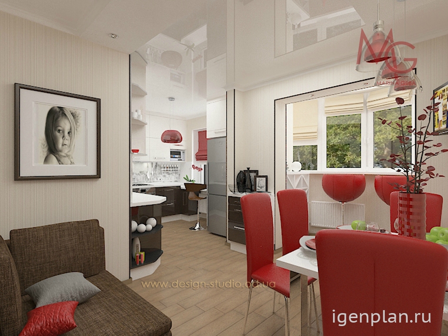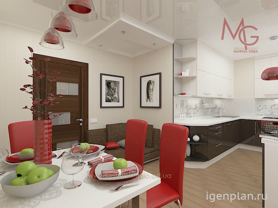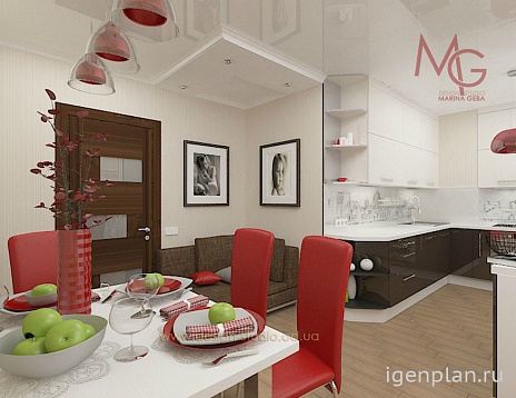 Размещение работы согласовано с Автором. Следующий интерьер в этом разделе: 2-х комнатная квартира с кухней нишей, Французский бульвар 26/24