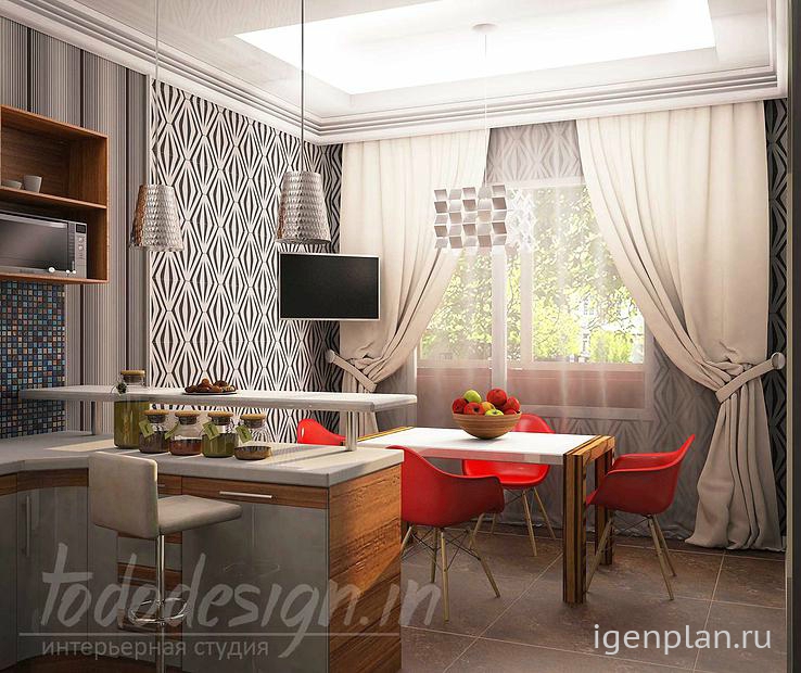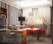Графичность + контраст, лаконичные формы + орнамент. Вот так кратко можно описать основные приемы, которые послужили основой для создание образа интерьера данной квартиры. Для каждого члена семьи дизайнеры предусмотрели уютный уголок. А в детской создали свой маленький мир. В небольшом, по сравнениями с другими комнатами, пространстве кухни-столовой дизайнеры эргономично уместили кухонный гарнитур со всем необходимым и уютный обеденный стол у окна с яркими стульями. В квартире изначально был спроектирован нестандартно большой коридор-прихожая. Но по желанию хозяев мы не стали загромождать его мебелью, а наоброт, декорировали стены яркими и орнаментальными обоями и подобрали светлую невесомую мебель. Кухню и гостиную объединили при помощи широкого арочного проема. В гостиной расположили удобный, комфортный современный диван-трансформер, который позволит хозяевам самим побыть проектировщиками своего интерьера, собирая мягкие модули в разные композиции по случаю прихода гостей.
