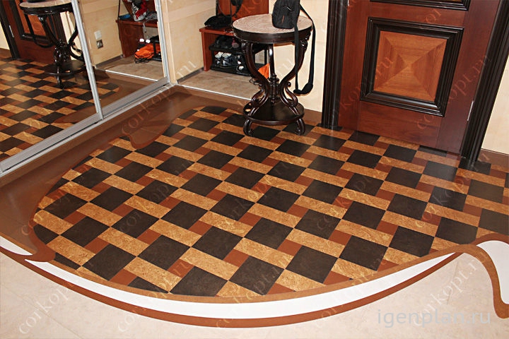 В данном разделе представлены фотографии выполненных нами объектов в интерьерах коридоров и холлов с применением художественных пробковых полов